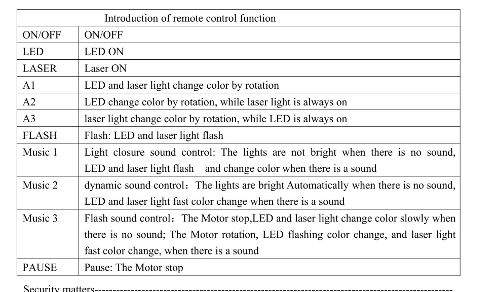 Working mode: Control Mode: Auto/Sound/Flashing/Remote Control