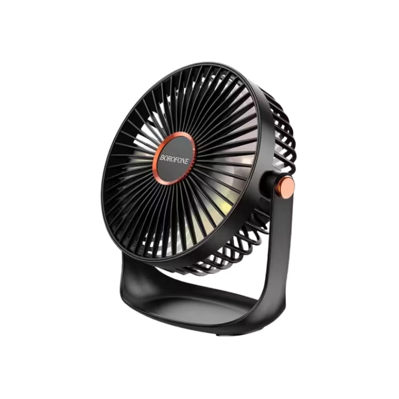 Stay cool and comfortable while adding a soft glow to your space with the BOROFONE DBF02 Desktop Fan with Light, a compact 2-in-1 device designed for both airflow and ambient lighting. Perfect for desks, bedside tables, or small rooms, it combines refreshing cooling with gentle illumination in one modern design.