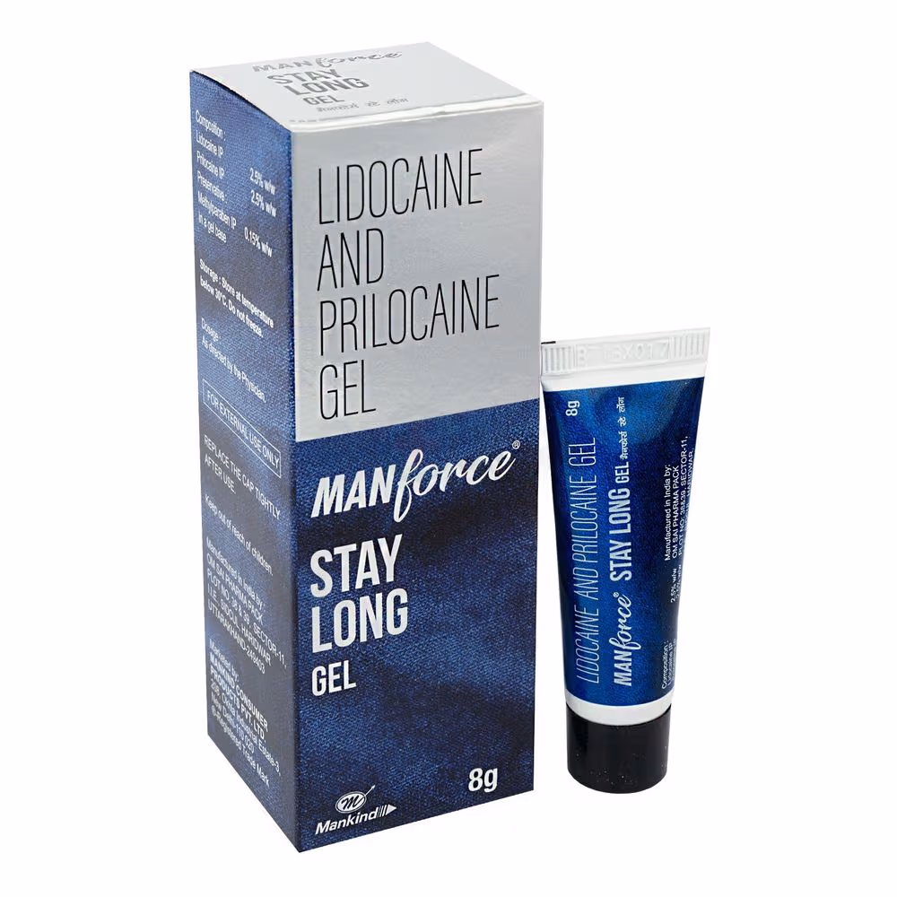 Buy Lidocaine and Prilocaine Manforce Staylong Gel 8g online from Arogga. Manforce stay long gel comprises Lidocaine and Prilocaine as the active ingredients. It prevents premature and rapid ejaculation in males, increases sex activity, and helps prolong the duration of intercourse.