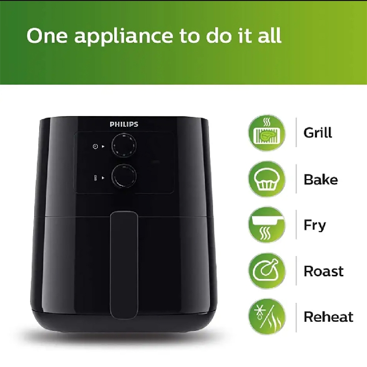 PHILIPS Air Fryer HD9200, uses up to 90% less fat, 1400W, 4.1 Liter, with Rapid Air Technology Black